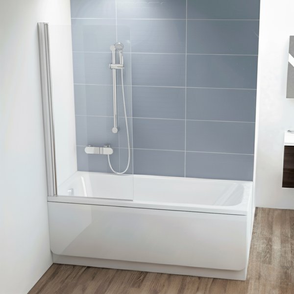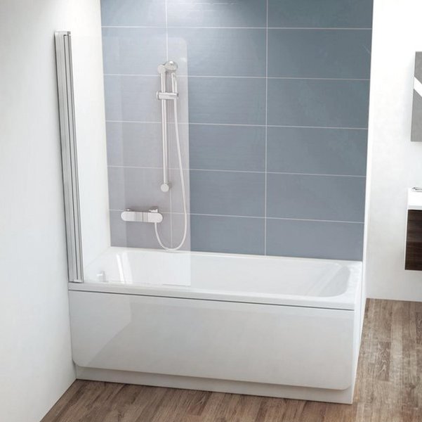 Штора состоит из одной неподвижной части, поворачивающейся как внутрь ванны, так и к наружу. Шторка подходит для прямоугольных ванн RAVAK City, Formy 01/02, 10°, Classic, Classic II, Campanula II, Vanda II, Chrome, Domino или для любой классической прямоугольной ванны с ровным передним бортом. Стандартная высота шторы 1500 мм. Шторка является составной частью концепции Chrome, в которую входит более 250 наименований и великолепно сочетается с мебелью, умывальниками, душевыми уголками и аксессуарами Chrome. Для поддержания водоотталкивающего покрытия стекла используйте средство RAVAK AntiCalc® Conditioner.