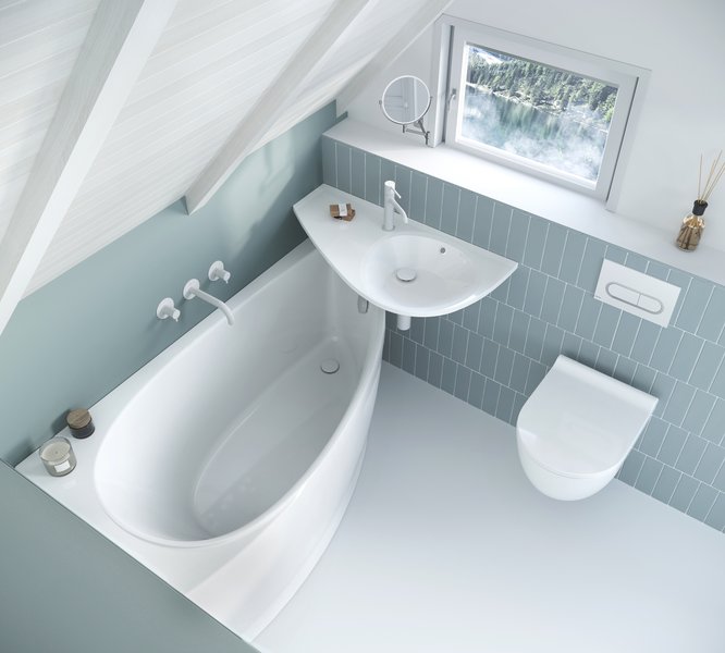 Поскольку форма умывальников Avocado вдохновлена самой природой, то и в ванной комнате парит спокойная и положительная атмосфера, которую подпитывает гармония в дизайне возникшей комбинации умывальника с ванной.