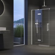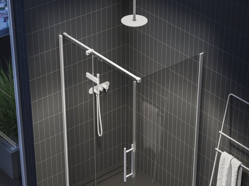 Поворот изделия на 180° обеспечивает возможность открывания двери как под левую, так и под правую руку. Устанавливается в облицованном плиткой углу ванной комнаты на душевые поддоны RAVAK PERSEUS, PERSEUS PRO, PERSEUS PRO FLAT, PERSEUS PRO CHROME, GIGANT PRO, GIGANT PRO FLAT, GIGANT PRO CHROME или непосредственно на пол со встроенным душевым каналом.