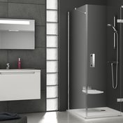 Позволяет разгуляться Вашей фантазии. Комбинация душевых дверей и неподвижной стенки разрешает создать душевой уголок размерами от 90 x 80 до 120 x 100 см.