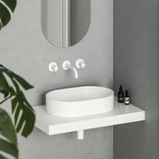 Привлекательное сочетание нежности, долговечности и свободы выбора размещения умывальника и смесителя на столешнице.