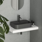 Умывальник предназначен для размещения на столешнице или тумбе. Прямые линии прекрасно смотрятся и легко вписываются в современный интерьер ванной комнаты.