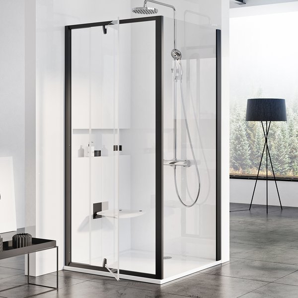 Минимум металлических профилей и максимум прозрачного стекла. Речь идет об изделиях серии Pivot. Подходит для ванных комнат, где необходимо подчеркнуть красоту кафеля. Профили и петли изделий PIVOT Black окрашены в черный цвет. Они прекрасно сочетаются с прозрачным стеклом и привлекают внимание.