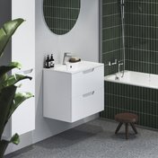 Тумба для умывальника Classic II 600/700/800 спроектирована под умывальник Classic II 600/700/800. Она оснащена двумя высокими выдвижными ящиками с большим пространством для хранения, с полным выдвижением из ниши. Поставляется в собранном виде, включая монтажный комплект (винты, петли, заглушки). Тумба монтируется к стене.