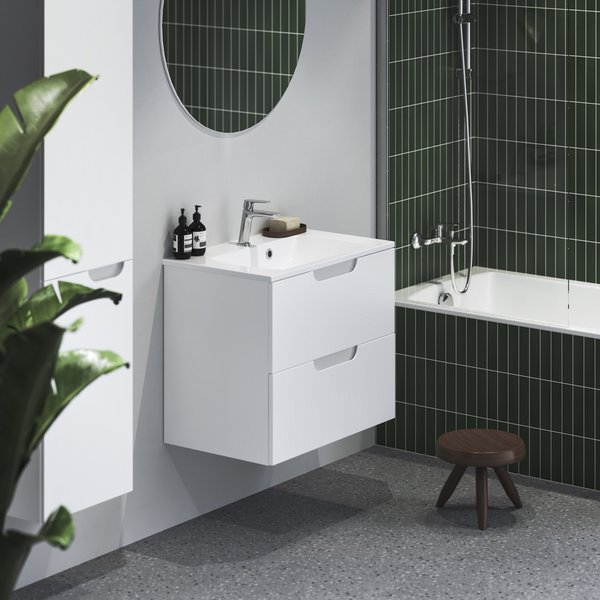 В мебели для ванных комнат Classic II дизайнер воплотил идею простоты и практичности в их сущностной форме. Скромные внешние линии подчеркивает аккуратно вырезанная овальная ручка в стиле дружеского минимализма.