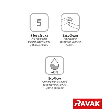 Для полного решения и дизайнерской гармонии ванной комнаты мы рекомендуем сочетать ее с другими смесителями Espirit того же цветового оформления. Для внешней очистки мы рекомендуем использовать RAVAK Cleaner Chrome.