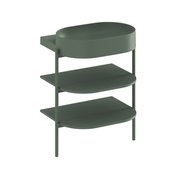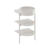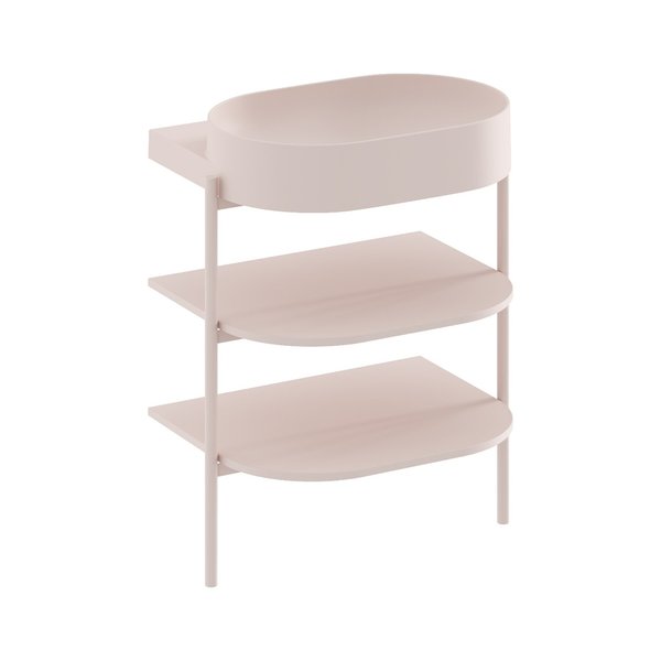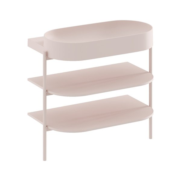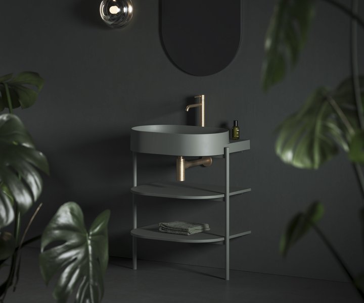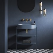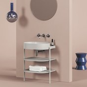 Минималистичный дизайн, в котором нет ничего лишнего, достигается благодаря продуманным конструктивным деталям. Благодаря тщательно подобранным пропорциям система полок на стальных ножках выглядит лёгкой и незаметной. При этом она предлагает достаточно места для хранения всех необходимых принадлежностей для ванной.