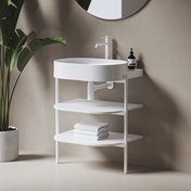Открытый стеллаж Yard идеально подходит к форме керамического умывальника, для которой он был создан. Его простота, но в то же время безупречная отделка, в сочетании с умывальником создают уникальный и воздушный акцент. Доступен в белом и чёрном цветах.